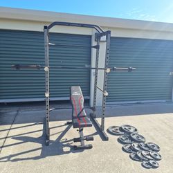 Gym Rack With Bench, Olympic Plates, Barbell With Clamps$550Melbourne, FL