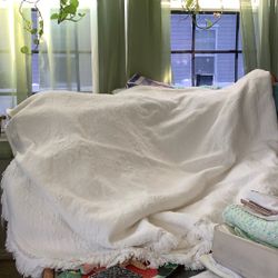 Queen Size All White Bedspread High Dollar With Design Woven In Fabric And Fringe Like New Rarely Used$50Sebastian, FL