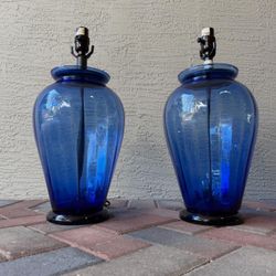 Vintage Mcm Deco Cobalt Blue Optique Blown Glass Table Lamp Pair$300Ocean Ridge, FL