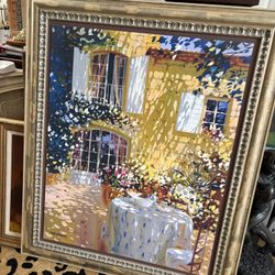 BIG 46.5” X 39” Beautiful Wood Framed Colorful Wall Art Like New. European Cafe Street Scene. Lots Of Depth. $100Boca Raton, FL