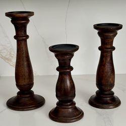 3 Pc Set of Brown Wood Pillar Candle Holders$20Lake Worth, FL