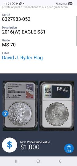 2023 ms70 West Point Silver Eagle “Paul Krause”$100Lake Worth, FL