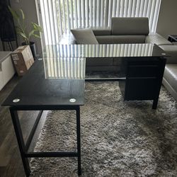 L-Shaped black tempered glass desk with metal frame read description for details LIKE NEW$275Wellington, FL