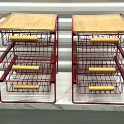 Set of 2 Steel Kitchen Organizers with Wood Top & Sliding Mesh Drawers$30West Palm Beach, FL