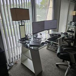 Glass Desk With Wood Shelving Legs$60Palm Beach Gardens, FL