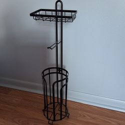 Toilet Paper Holder Stand with Top Storage Shelf, Black Toilet Paper Roll Holder Free Standing, Floor Standing Toilet Roll Dispenser Storages 4 Reserv$10Palm Harbor, FL