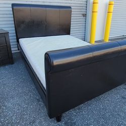 (FREE DELIVERY) Black Leather Queen Sleigh Bed, Boxspring, & Nightstand $200Port Richey, FL