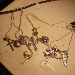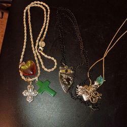 1 rope chain with heart 2 crosses to be able choose to ware 1 Arrowhead pendant with lion on it 1 charm necklace with love peace elephant lock jewel $9New Prt Rchy, FL