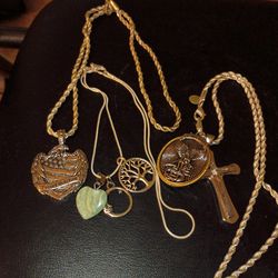 2 rope chain with cross and saint Michael pendant 1with veteran pendant 1with charms tree of life moonandheart in perfect condition$10New Prt Rchy, FL
