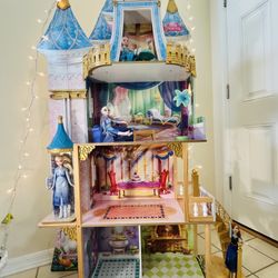 Disney Princess Royal Celebration wooden doll house made by KidKraft. It stands over five feet tall. (4) four Frozen Disney Princess Dolls$100Tampa, FL