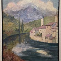 VINTAGE IMPRESSIONIST OIL PAINTING - LAKESIDE VILLAGE AND MOUNTAIN LANDSCAPE$50St. Petersburg, FL