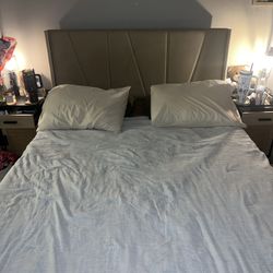 Allewie Queen Size Platform Bed Frame Beige Upholstered Headboard$90Tampa, FL