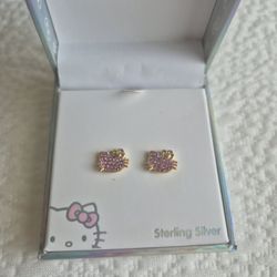 Hello Kitty Sterling Silver Crystal Stud Earrings Gold Plated $20Wesley Chapel, FL