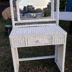 Vintage White Rattan Wicker Vanity w/ Mirror & Drawer$75Largo, FL