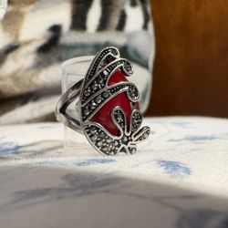 VINTAGE 14K GOLD CORAL/DIAMOND DOUBLE ROSE RING SIZE 7 VALENTINES DAY $275Largo, FL