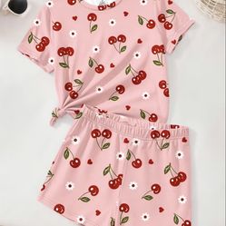 Girls 2 Piece Summer Outfit Cherry Shirt Shorts Set Pink Size 7Y$8Miami, FL