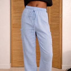 Light Blue Linen-Like Gauze Cargo Pants (M) – Relaxed Fit, Minor Bleach Spots$12Miramar, FL