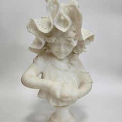 Antique Alabaster Bust Young Girl with Oversized Bonnet & Bow – Charming Victorian Child Holding Orb$300Homestead, FL