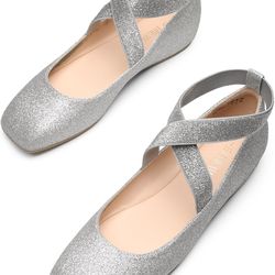 Brand New Women’s “ballet” Flats, Slip On W/Ankle Straps Silver Sparkle Sz10$25Biscayne Park, FL