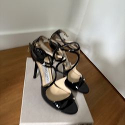 Jimmy Choo Black Patent Strappy Buckle Stiletto Open Toe Shoes 37.5 LANG$40Miami, FL