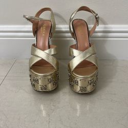 Authentic Rene Caovilla Gold Sandals Slides Heels Shoe 38 7.5$65Aventura, FL