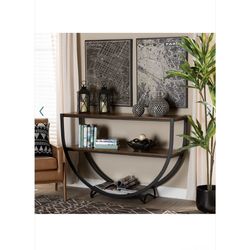 New Luxury Italian entrance console table with mirror. Mirror has a custom shape. Solid wood table color: Brown Cherry. H80”X W26”. Made In Italy .$400Sunny Isles Beach, FL