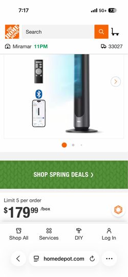 Dreo 42 in. 12 Speeds Smart Outdoor Misting Tower Fan in Black w/Remote, 20 ft Mist, 150° Oscillation, UV-Resistant$140Miramar, FL