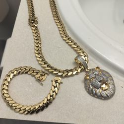 14K gold plated Miami 12 mm Cuban Link chain bracelet and pendant set$320Hollywood, FL