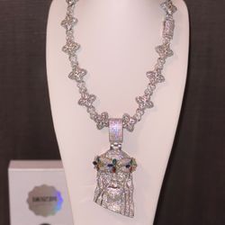 ICED OUT 18k White Gold Plated Necklace With Jesús Pendant $235Miami, FL