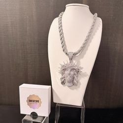 ICED OUT 18k White Gold Plated Rope Chain Necklace With Jesús Pendant $200Miami, FL