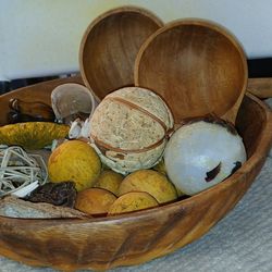 Mid-century modern teak wood salad bowl set with hand-carved wooden fruit$30Lynn Haven, FL