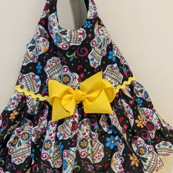 Handmade Halloween Sugar Skulls Dog Dress With Shiny Yellow Tulle Under Skirt $25Panama City, FL
