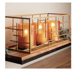 Karma, Modern Candle Holder Centerpiece with Gold Wire Rectangular Frame and Gold Bases for 3 Pillar or Tealight Candles - Blanc$30Boca Raton, FL