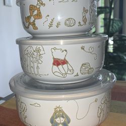 Winnie The Pooh Tigger Piglet Eeyore Set Of 3 Ceramic Food Storage Bowls With Vented Lids $40Hialeah, FL