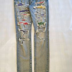 Amiri Rainbow Patch Thrasher Jeans Clay Indigo Size 33$400Pembroke Pines, FL