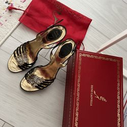Authentic Rene Caovilla Gold Sandals Slides Heels Shoe 38 7.5$50Aventura, FL