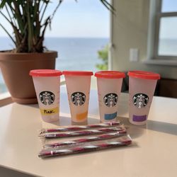 COLOR CHANGING Starbucks Cups Set (4) with Lids & Straws Cold Drink Tumblers$25Boca Raton, FL