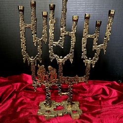 vintage Brutalist-style Hanukkah menorah, manufactured in Israel by K.L. 13.5"×9" $95Boca Raton, FL
