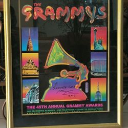 This item is a framed original vintage poster from the 2003 45th Annual Grammy Awards, featuring cover art designed by artist Peter Max. $975Lake Worth, FL
