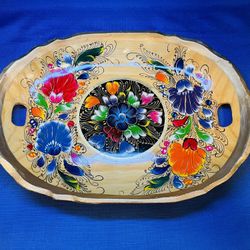 Vintage Hand Painted Mexican Folk Art Oval Wooden Tray $28West Palm Beach, FL