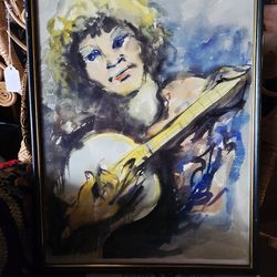 Vintage Watercolor Painting "Girl with the Banjo " Signed Framed 18.5"×13"$37Boca Raton, FL