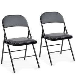 2 Pack Leather Padded Folding Chair, Indoor Outdoor Portable Stackable Commercial Seat with Steel Frame, Capacity for Home, Office, Party, Comfy, Blac$30Oakland Park, FL