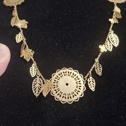 Goldtone Filagree Leaf Motif 32" Necklace, Botanical Theme Intricate Openwork Coin Shaped Pendants W/Leaf Charms$5Fort Lauderdale, FL