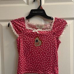 Brand New Girls Fuchsia Polka Dot Lace trim Top Size 10/12 Kids$5West Palm Beach, FL
