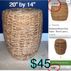 $45 Beautiful Woven Drum End Table like new measurements 20” by 14”$45Boca Raton, FL