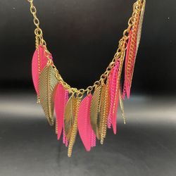 Pink & Gold Leaf Statement Necklace Boho Multi-Chain Feather Fringe Bib Jewelry$14Boca Raton, FL