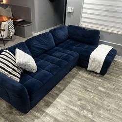 Navy Blue Velvet L Shaped Sectional Sofa $600Halndle Bch, FL