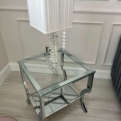 Coffee Table with Glass Top and Pull Out Rolling Tables with Matching End Table with Glass Top and Lamp $150West Palm Beach, FL