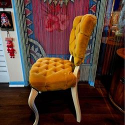 Vintage chair featuring a tufted golden velvet upholstery and a white-painted wooden frame in the Queen Anne or Louis XV style. $85Boca Raton, FL