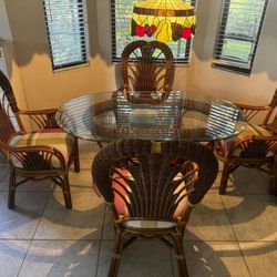 Vintage Rattan Dining Set – Glass Top Table + 4 Chairs $700Boynton Beach, FL
